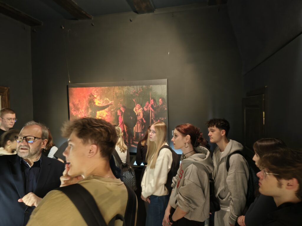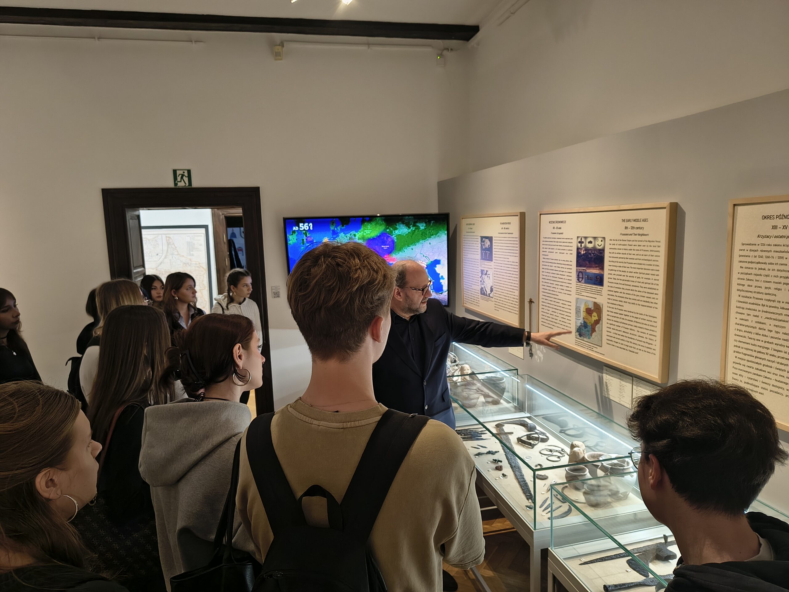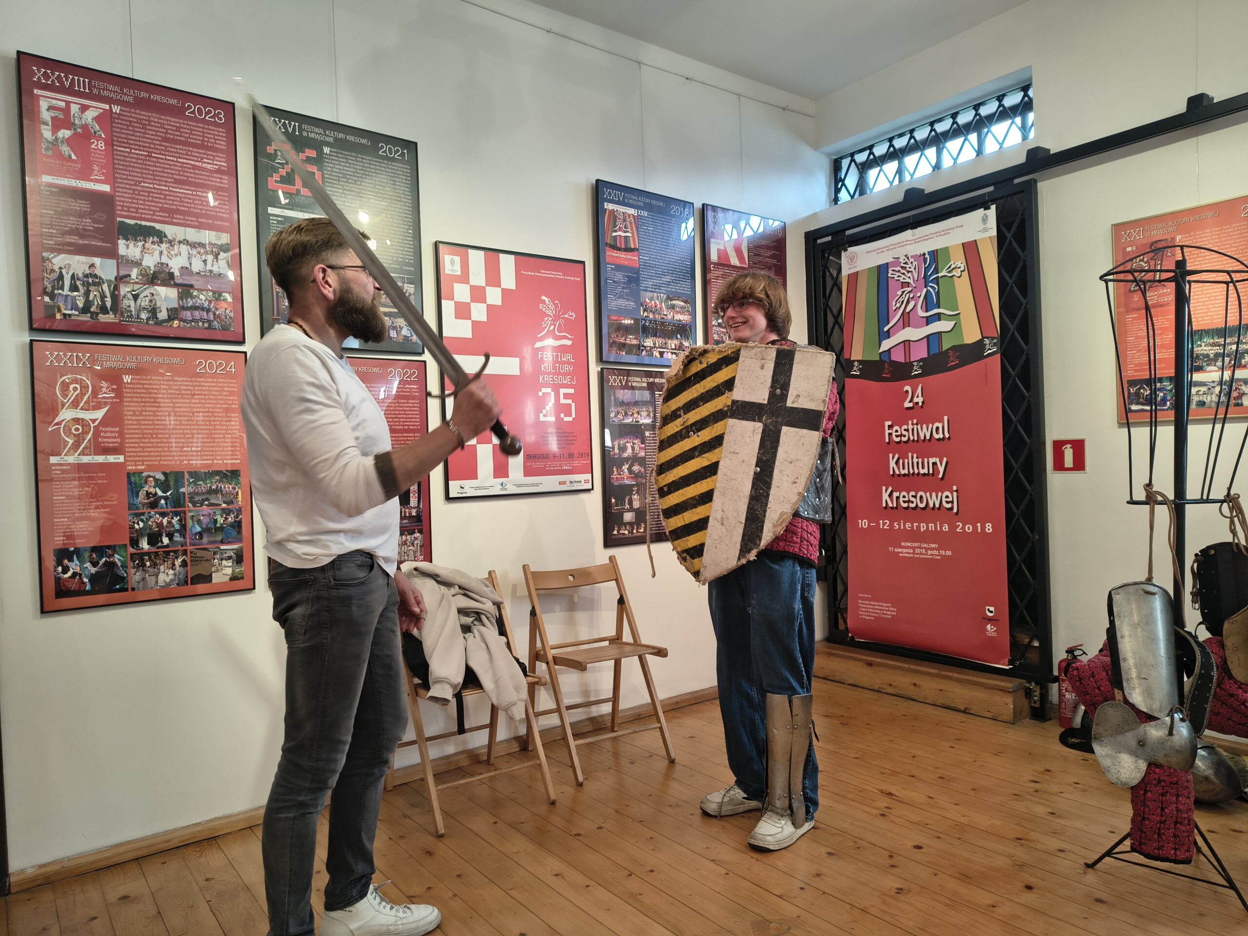 Podczas bardzo aktywnych zajęć, uczniowie zostali oprowadzeni po wystawach stałych placówki przez jej kierownika Klaudiusza Woźniaka oraz uczestniczyli w prelekcji nestora mrągowskiego ruchu rekonstrukcyjnego p. Tomasza Wasilewskiego. Osobiście mogli przekonać się o ciężarze i mobilności zbroi rycerskiej, a także mieli możliwość uczestniczenia w zabawach i tańcach prosto z epoki średniowiecza. Wizyta w muzeum z pewnością wzbogaciła wiedzę o temacie którego dotyczy projekt i ułatwi w przyszłości zrozumienie wielu odkrywanych podczas badań kontekstów historii.