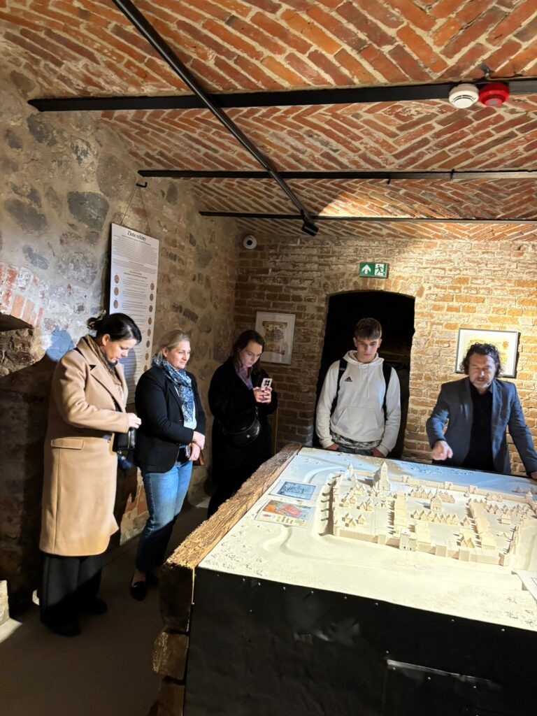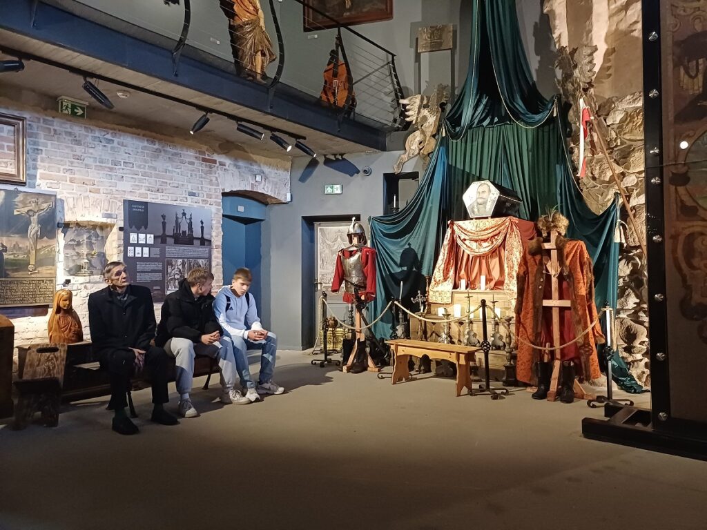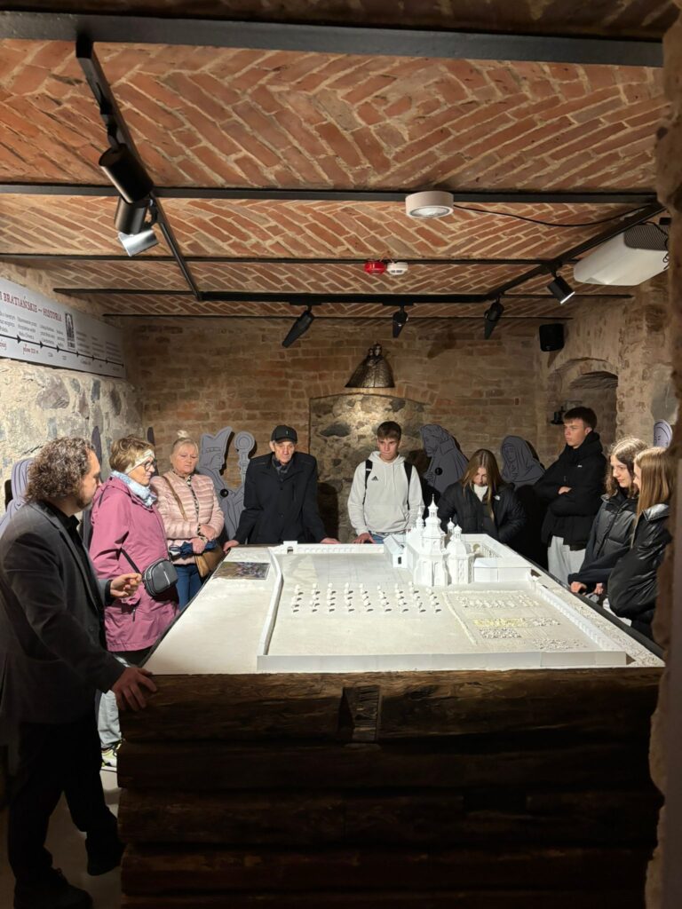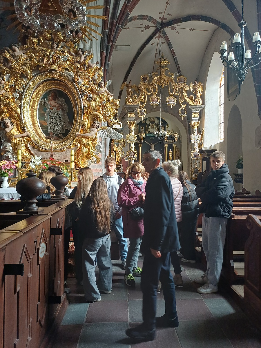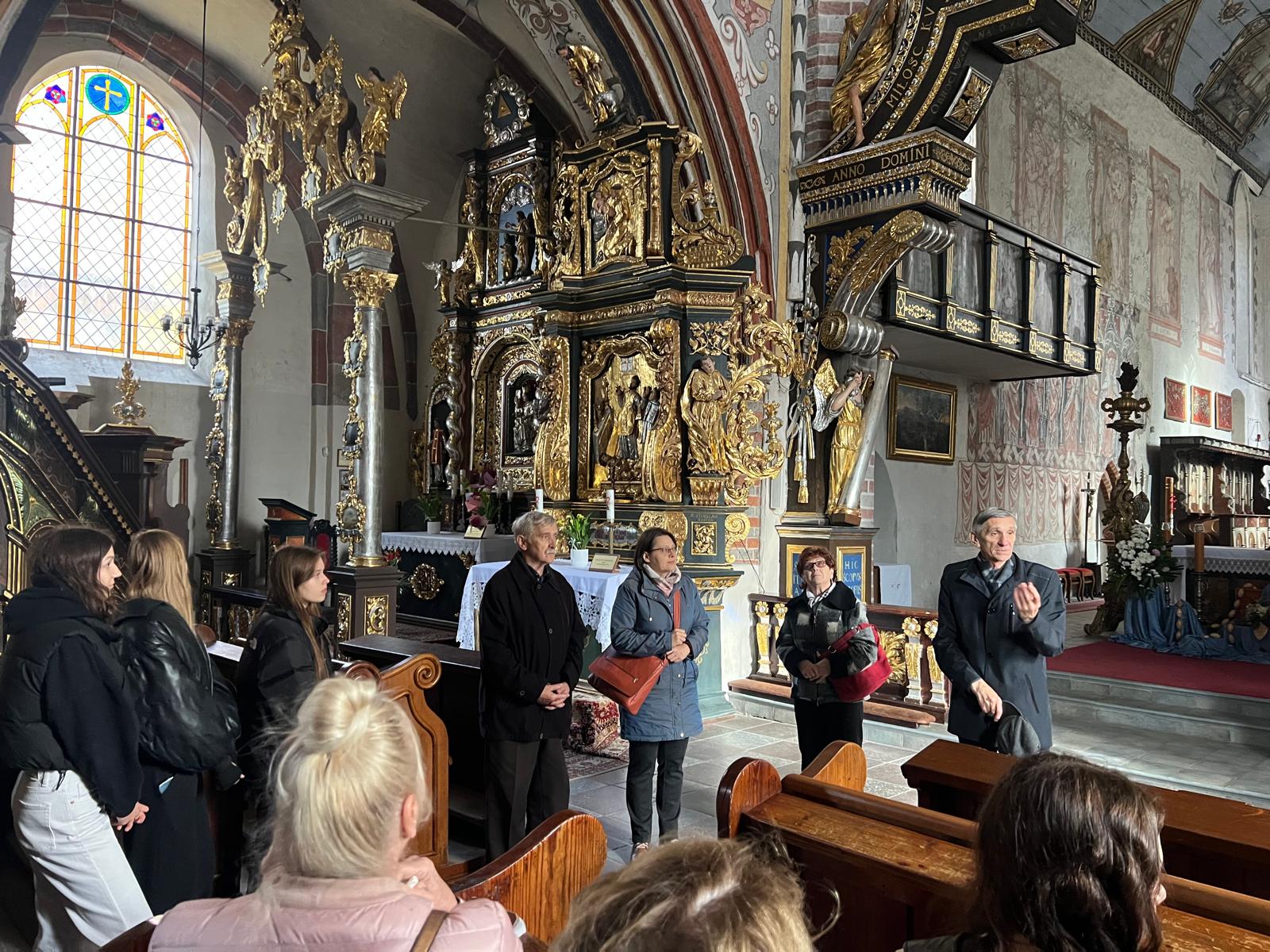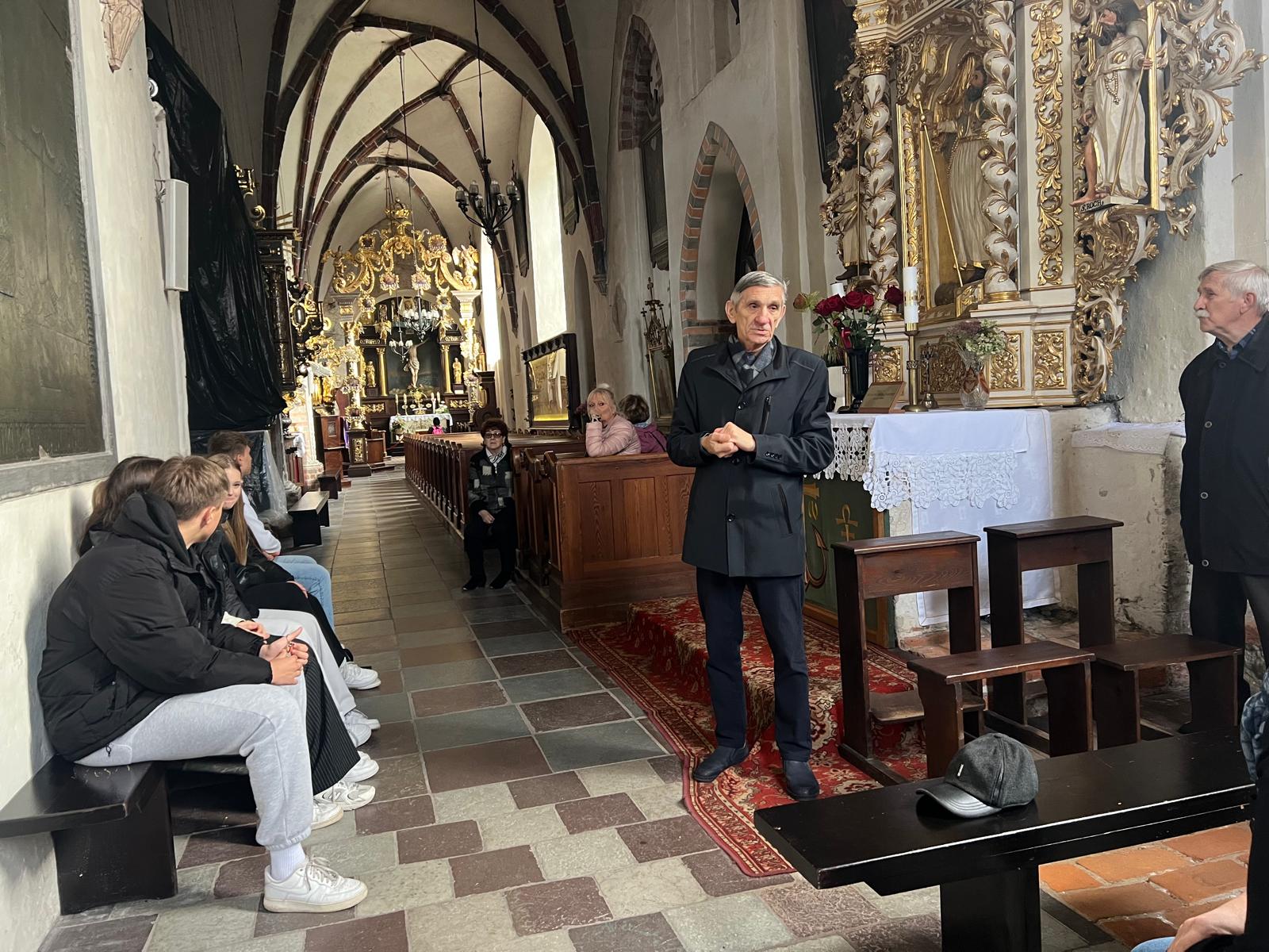 Naszym przewodnikiem był Pan dr Andrzej Korecki – znany lokalny historyk, który z ogromną pasją i zaangażowaniem opowiadał o dziejach Nowego Miasta Lub. Podczas spaceru poznaliśmy wiele ciekawych faktów i anegdot związanych z historią miasta, jego zabytkami oraz dawnymi mieszkańcami. Zatrzymaliśmy się m.in. przy Bazylice św. Tomasza Apostoła, gdzie Pan Andrzej przybliżył nam niezwykłe dzieje tej świątyni oraz jej architektoniczne tajemnice. Odwiedziliśmy również Muzeum im. Działyńskich, w którym mogliśmy zobaczyć wiele interesujących eksponatów związanych z lokalną historią i kulturą regionu. Przewodnikiem w muzeum był Pan Andrzej Andrzejewski.