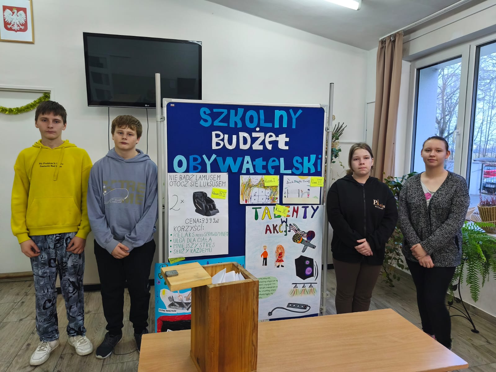 Zwycięzcą Szkolnego Budżetu Obywatelskiego został projekt klasy 8 – utworzenie w szkole źródełka wody pitnej, czyli wyposażenie szkoły w dystrybutor wody. Była to decyzja podjęta przez uczniów, pokazująca ich zaangażowanie i odpowiedzialność za wspólne dobro.