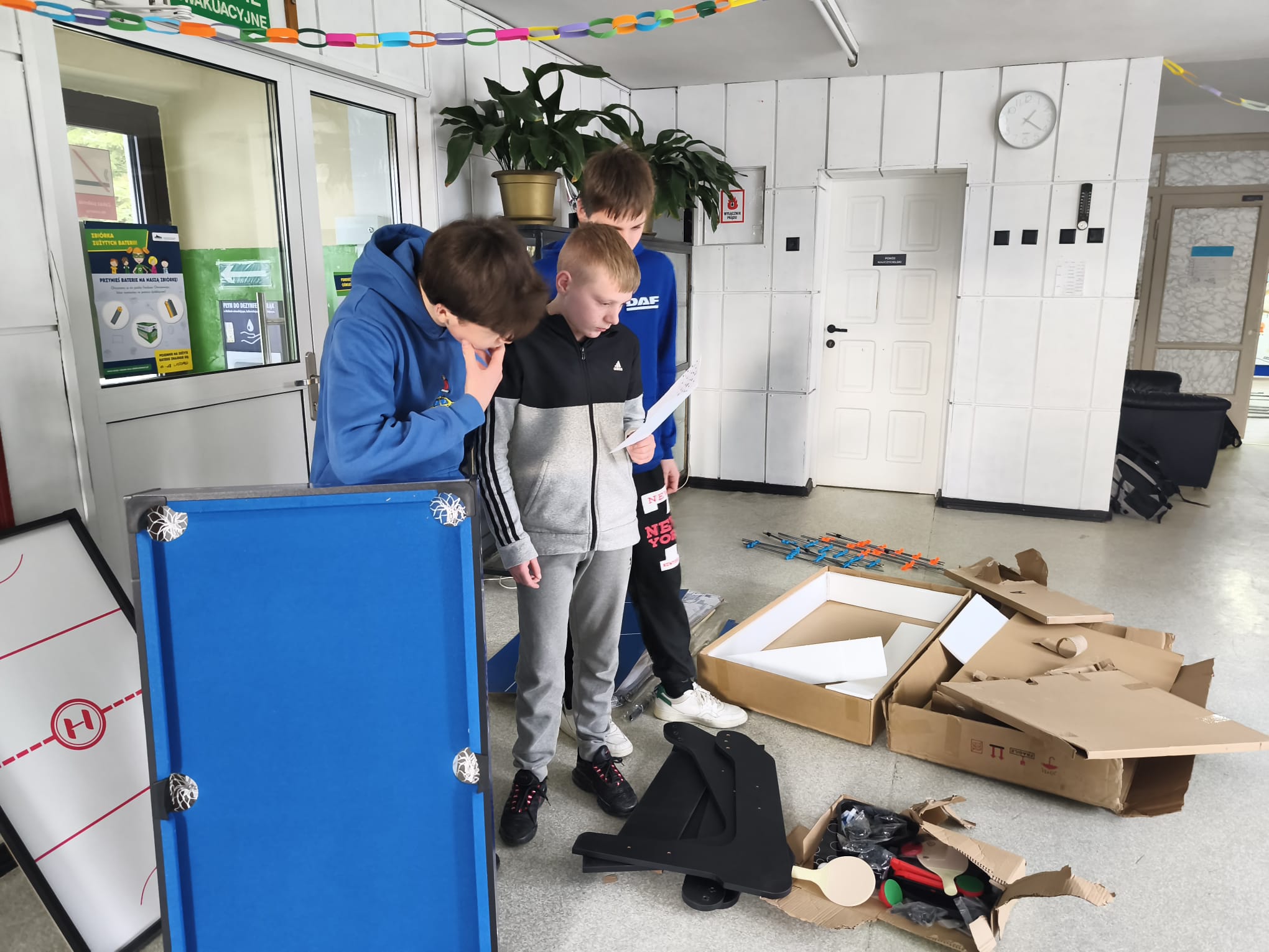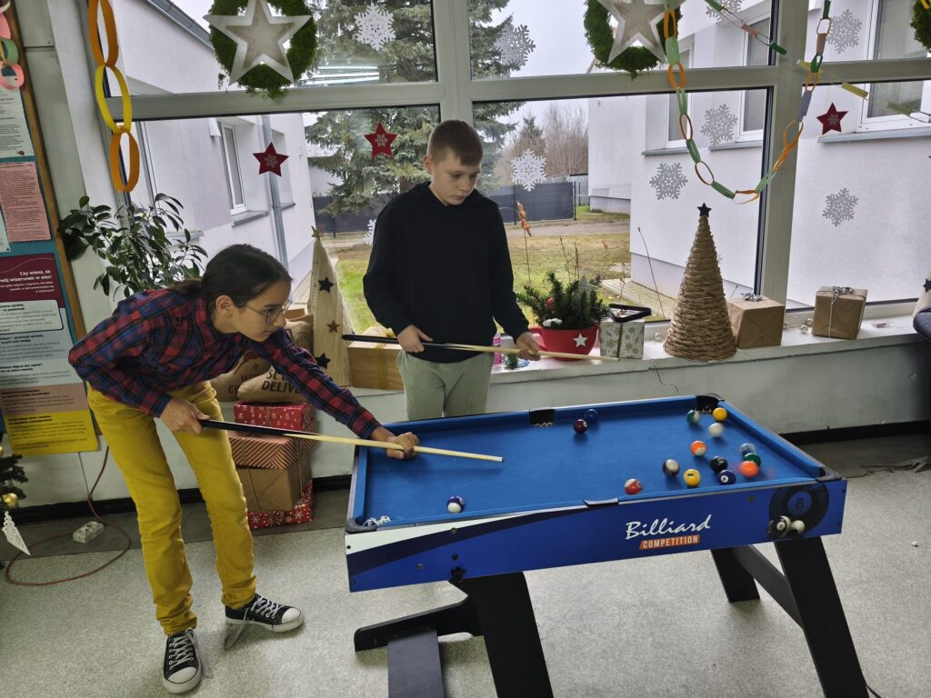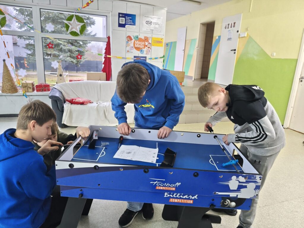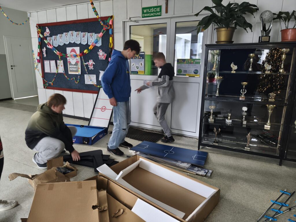 Co więcej, chłopcy z klas VI–VIII samodzielnie dokonali montażu zakupionych gier, wykazując się odpowiedzialnością, zaangażowaniem i umiejętnością współpracy🙌 W naszej szkole nie ma nudy! Koszykarz, bilard, piłkarzyki, cymbergaj, podłogowy twister, kółko i krzyżyk oraz podłogowa gra w klasy sprawiły, że uczniowie przychodzą do szkoły z uśmiechem na twarzy😁