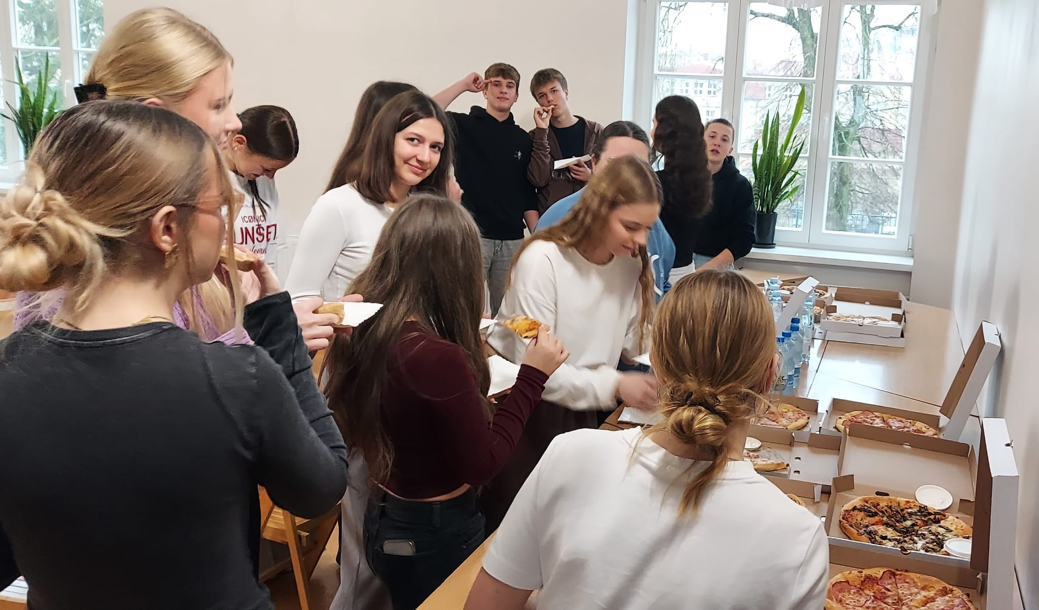Dodatkowym, niezwykle miłym akcentem spotkania był aromat pysznej pizzy, który towarzyszył uczniom podczas rozmów. Wspólne jedzenie stało się okazją do swobodnej dyskusji o tolerancji, różnorodności i wzajemnym zrozumieniu. Rozmowy prowadzone „przy pizzy” pozwoliły uczniom spojrzeć na temat emocji w bardziej naturalny, codzienny sposób, budując przy tym jeszcze większą otwartość i poczucie zaufania w grupie.
