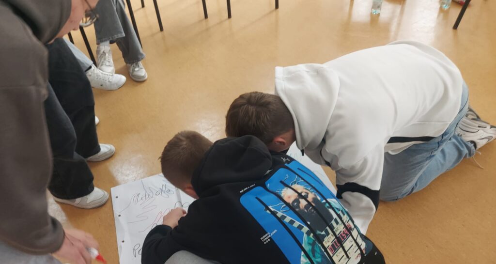 Podczas spotkania uczniowie uczestniczyli w różnorodnych ćwiczeniach integracyjnych, które pozwoliły im lepiej się poznać, odkryć swoje mocne strony i role w grupie. Wspólnie tworzyli „mapę zespołu”, brali udział w zabawach wymagających zaufania, komunikacji i współpracy, a także podejmowali kreatywne zadania rozwijające umiejętność podejmowania decyzji.