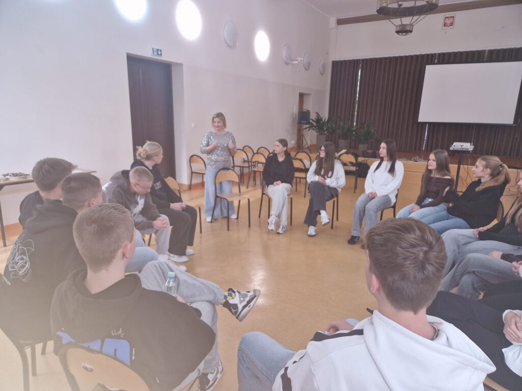 Zajęcia przebiegły w bardzo dobrej atmosferze – uczniowie z zaangażowaniem i radością uczestniczyli w proponowanych działaniach. Widać było, kto naturalnie pełni role lidera, kto wspiera grupę, a kto potrafi skutecznie organizować pracę zespołu. Wszystkim towarzyszyła dobra zabawa, śmiech i chęć współdziałania.